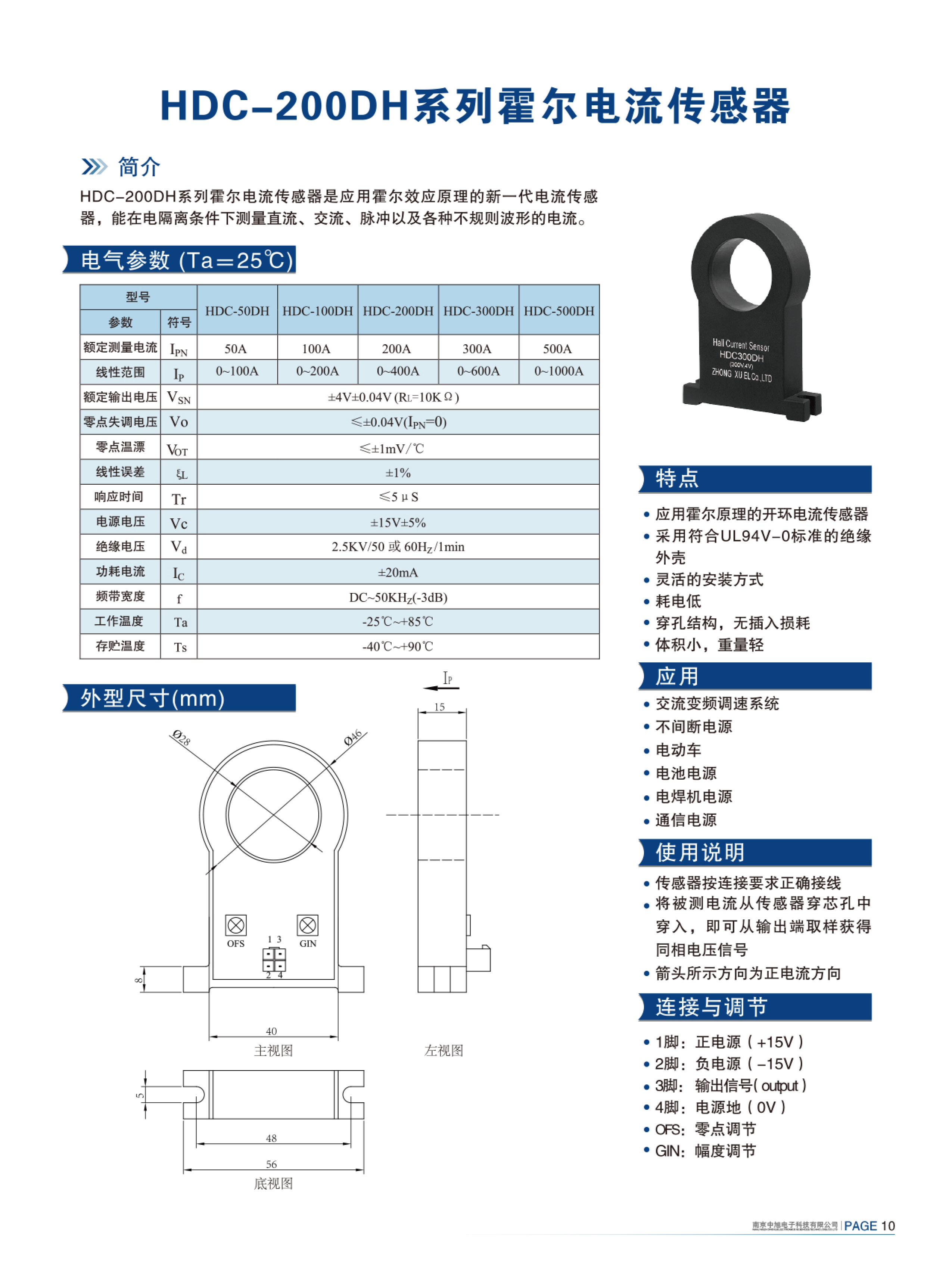 HDC-300DH series Hall current sensor is a new generation of current sensor using the principle of Hall effect. It can measure currents of DC, AC, pulse and various irregular waveform under electrical isolation.